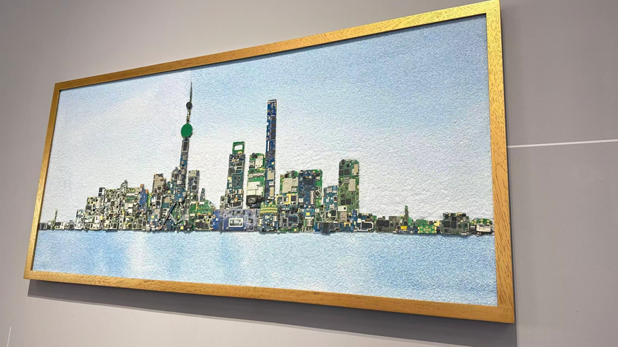 华勤技术展厅由主板零件拼接的陆家嘴江景图。